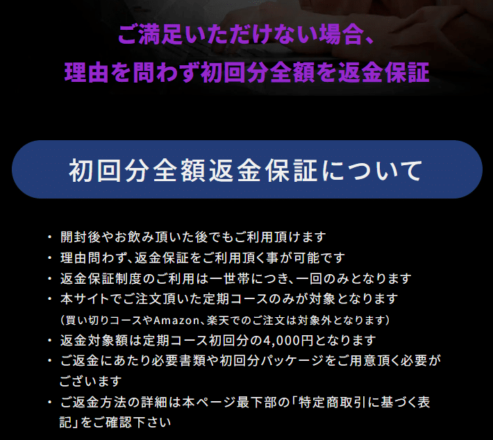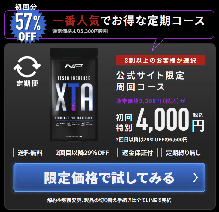 テストインクリースXTAの定期便の初回分4,000円には、永久返金保証が付いているんです!