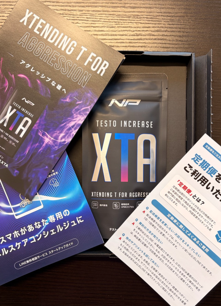 パッケージには大きくXTAと記載。青から紫へのグラデーションが夜の逞しさを連想させ、効果を期待させてくれます。